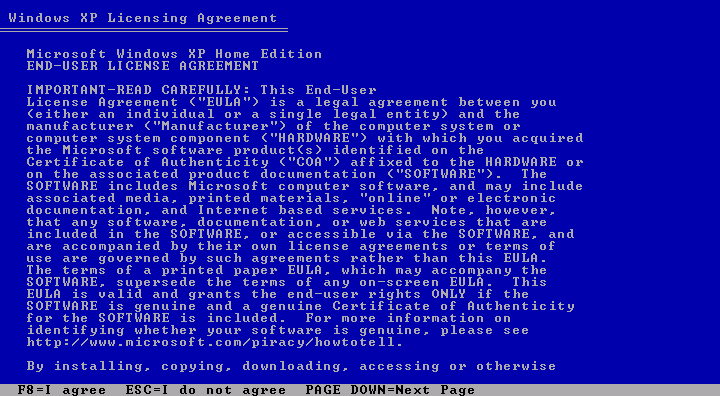 Figure 134: Microsoft License Agreement Press F8 to accept.