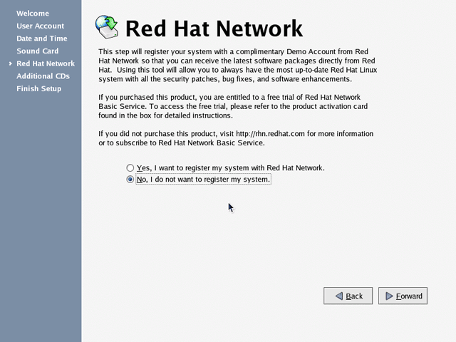 Figure 191: Registration For now, we’ll choose not to register Red Hat.