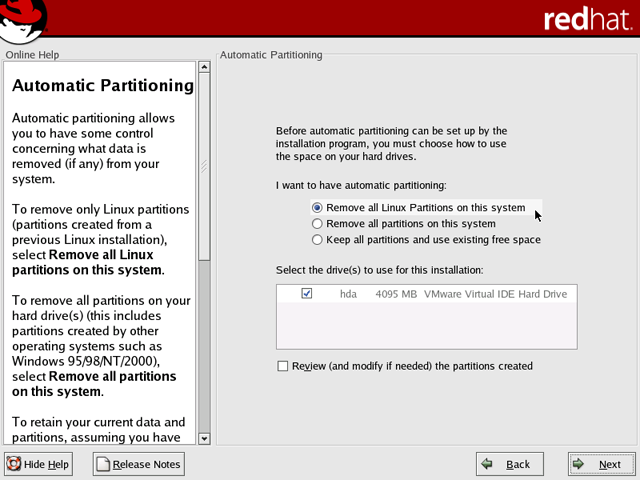 Figure 171: Removing Linux partitions Choose to remove all Linux partitions. Don’t remove non-Linux partitions, because we wish to keep Windows XP installed also.