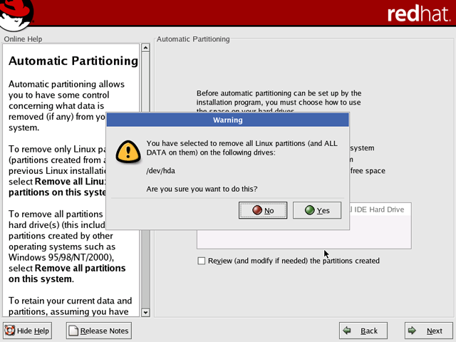 Figure 172: Confirming partition removal Confirm that you wish to remove all Linux partitions.
