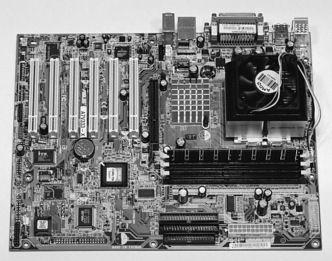 has its CPU installed with its heatsink and fan, and the RAM has been