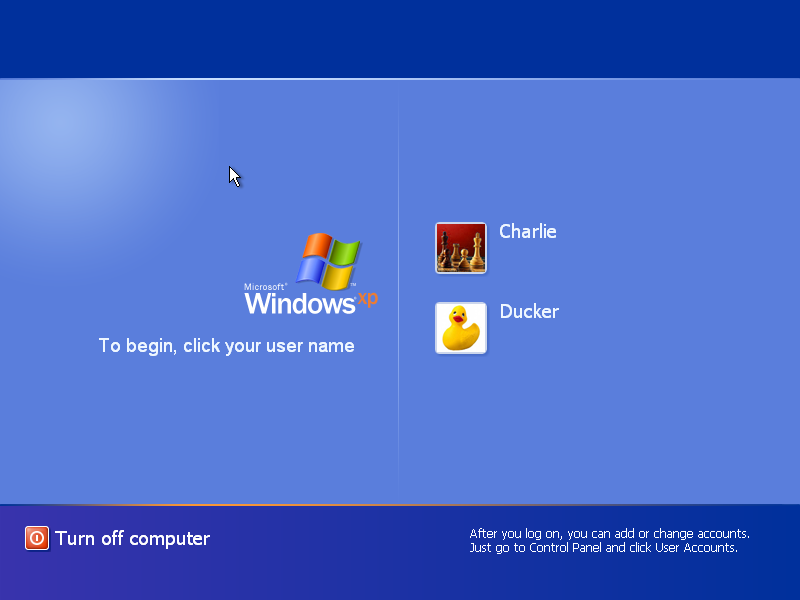 Figure 150: Standard Windows login screen Click on your user icon to log into Windows. Each user can have his or her own personalized settings. (You can change your login picture later if you wish. Just go to “Control Panel” and select “User Accounts.”)