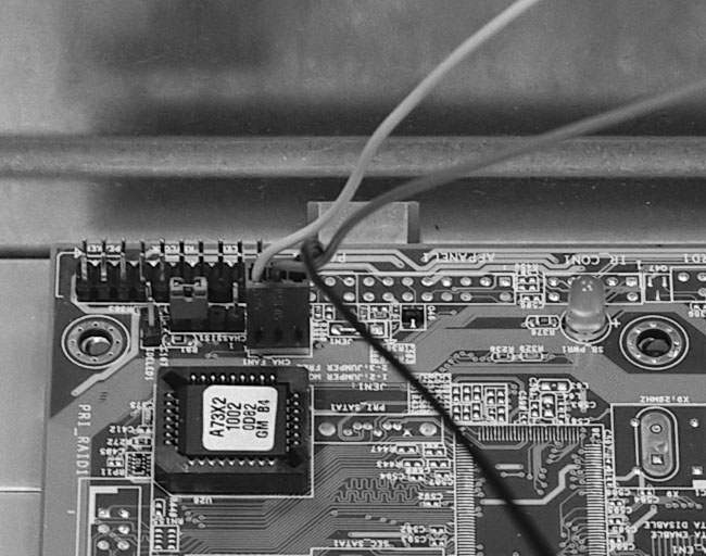Figure 71: Connecting the PC case fan See your mainboard manual to determine where the case fan is connected. The case fan is typically connected with a three-pin connector similar to the CPU fan you connected earlier.