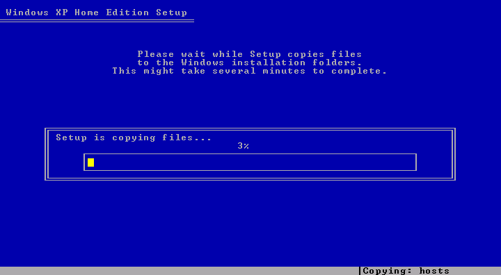 formatting is finished, XP begins copying operating system files to