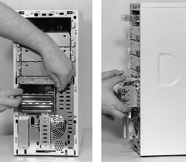 Figure 48: Removing the 3.5” drive cage 3.5” drives (floppy and hard drives) will attach to this removable cage with screws.