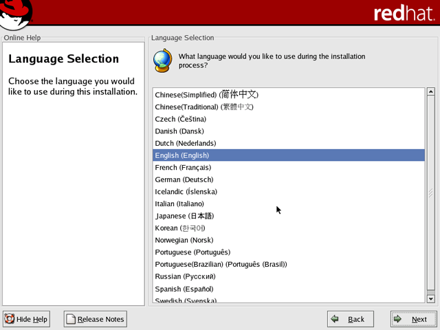 The next screen shows language options.