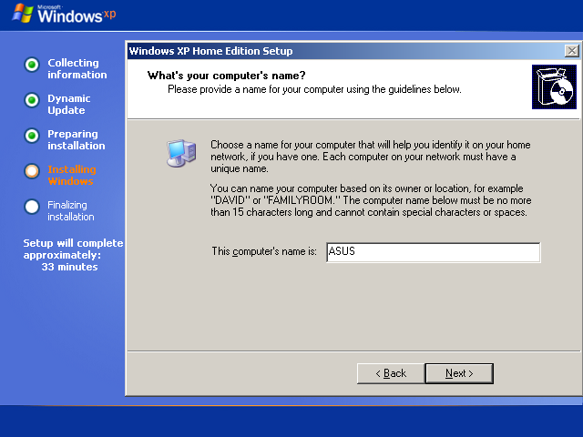Figure 144: Naming the PC Like a proud new parent, you can name your PC. The name will identify the PC on a network.