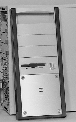 Figure 83: Removing the bay cover from the bezel. The 5.25” CD-RW drive will occupy this bay.