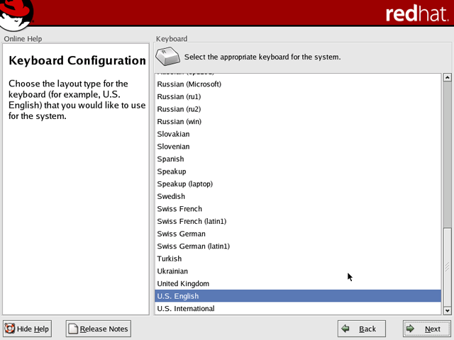 Figure 167: Keyboard configuration Choose U.S. keyboard and hit “Next.”