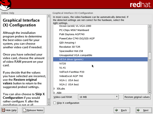 Figure 182: Video card configuration Your video card might be selected automatically. If not, select your card from the list.