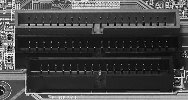 Find the 34-pin floppy connector