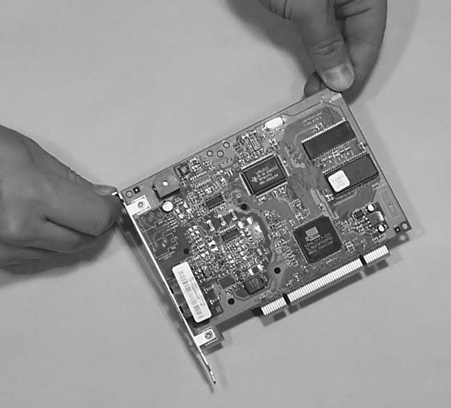 Figure 4: Holding a PCI card properly, by the metal and the edges