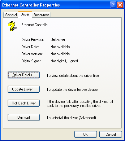 Figure 159: Ethernet Controller Properties Right clicking on the Ethernet Controller in Device Manager is another way to change the network driver. If some piece of hardware isn’t working, ask if the device needs a driver and see if the proper driver is installed.