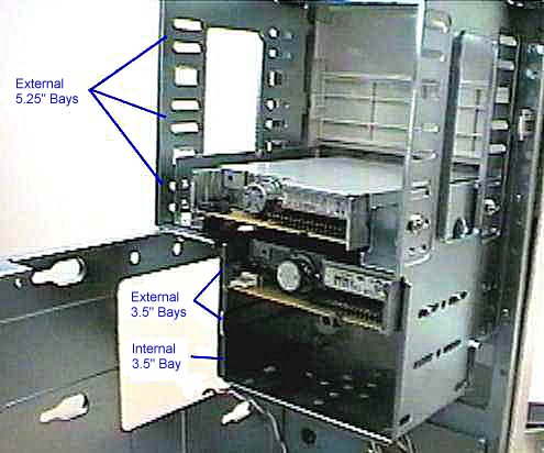 [ The PC Guide | Systems and Components Reference Guide | System Case | Drive Bays ] Internal Drive Bays These bays are entirely within the case and are not accessible from the outside. If a device does not require any access from the outside it is preferable to use an internal bay, and save the case's external bays for drives that need them. In practical terms, this means that internal drive bays are usually used for hard disk drives, which do not require any access by the user.