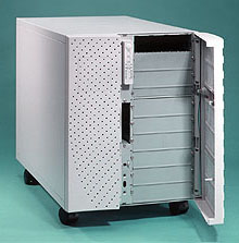 For servers and other high-end machines, special cases much larger than standard full towers are available. These large cases often incorporate special features such as locking front covers, slide-out drive bays and wheels (since they are heavy). They can cost as much as an entire regular PC by themselves. In addition to server-oriented full-sized cases, there are special enclosures for such things as RAID (disk) arrays available from major case manufacturers.
