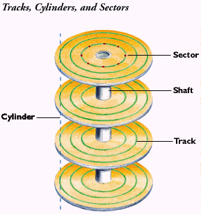 [ The PC Guide | Systems and Components Reference Guide | Hard Disk Drives | Hard Disk Geometry and Low-Level Data Structures | Hard Disk Data Tracks, Cylinders and Sectors ] The Difference Between Tracks and Cylinders A hard disk is usually made up of multiple platters, each of which use two heads to record and read data, one for the top of the platter and one for the bottom (this isn't always the case, but usually is; see here for more details). The heads that access the platters are locked together on an assembly of head arms. This means that all the heads move in and out together, so each head is always physically located at the same track number. It is not possible to have one head at track 0 and another at track 1,000. Because of this arrangement, often the track location of the heads is not referred to as a track number but rather as a cylinder number. A cylinder is basically the set of all tracks that all the heads are currently located at. So if a disk had four platters, it would (normally) have eight heads, and cylinder number 720 (for example) would be made up of the set of eight tracks, one per platter surface, at track number 720. The name comes from the fact that if you mentally visualize these tracks, they form a skeletal cylinder because they are equal-sized circles stacked one on top of the other in space.