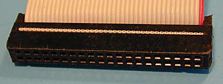 The data connectors for IDE/ATA are standardized. Drives and hosts (controllers) have male connectors consisting of two rows of 20 pins, with a plastic "fence" surrounding them. Cables have female connectors with two rows of 20 holes for the pins. There are two ways that these connectors are supposed to be keyed for proper orientation (to prevent the cable from being inserted into the drive or controller upside-down). On the male connectors, pin #20 is supposed to be missing, and on the cable, the hole for pin #20 is supposed to be blocked. Also, the female (cable) connectors are supposed to have a tab in the middle on top that matches a gap in the plastic surrounding the male pins. If you tried to put a cable in upside-down, these keyings would prevent insertion. Unfortunately, yet again, these measures were never standardized. Some drives and controllers were produced that had pin #20 in place, even if it was not used, and some did not have the "gap" in the plastic surrounding the pins. If you used a properly-designed cable with an improperly-constructed drive or controller, the cable wouldn't fit. To avoid this, many IDE/ATA cable makers just said "to heck with it" and made the cables with no plastic tab on the connectors, and no block for hole #20. As a result, the entire orientation scheme fell apart, so one must be careful to line up pin #1 on the cable with pin #1 on the drive. There is usually a red stripe on the edge of the cable on the side where pin #1 is, but it's still easy to get the cable backwards. Fortunately, the standard data connector has no live power signals, so damage is not typical if the cable is inserted upside-down (though the drive won't work that way, of course!)
