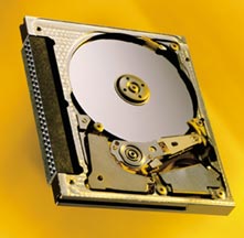 As you can see, the CF form factors are very small: so small that they were probably never designed with the thought that anyone would make a true hard disk using them. The engineers at IBM however had a different idea! In 1999, while the makers of regular flash memory cards were struggling to reach 64 MB capacity, IBM introduced the Microdrive, a true hard disk that fits into the small confines of the CF form factor. The original Microdrive was available in either 170 MB or 340 MB capacities, which is pretty impressive considering that the drive uses a single 1" platter... even more impressive is the new Microdrive released in 2000 with a whopping 1 GB capacity! The Microdrive uses the CF Type II format, which is 5.0 mm thick. No current hard disks are made for the even smaller Type I size (only 3.3 mm thick) but I have heard rumors that at least one company is working on it, and I'd be surprised if IBM themselves didn't have something brewing in this regard also. Pretty cool.