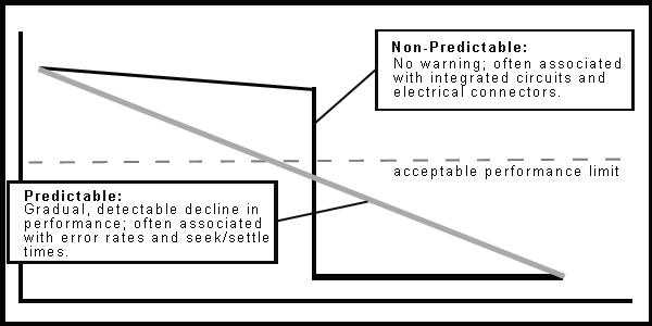 (Some of the quality and reliability features I am describing in this part of the site are in fact used to feed data into the SMART software.) Using statistical analysis, the "acceptable" values of the various characteristics are programmed into the drive. If the measurements for the various attributes being monitored fall out of the acceptable range, or if the trend in a characteristic is showing an unacceptable decline, an alert condition is written into the drive's SMART status register to warn that a problem with the drive may be occurring. SMART requires a hard disk that supports the feature and some sort of software to check the status of the drive. All major drive manufacturers now incorporate the SMART feature into their drives, and most newer PC systems and motherboards have BIOS routines that will check the SMART status of the drive. So do operating systems such as Windows 98. If your PC doesn't have built-in SMART support, some utility software (like Norton Utilities and similar packages) can be set up to check the SMART status of drives. This is an important point to remember: the hard disk doesn't generate SMART alerts, it just makes available status information. That status data must be checked regularly for this feature to be of any value. Clearly, SMART is a useful tool but not one that is foolproof: it can detect some sorts of problems, but others it has no clue about. A good analogy for this feature would be to consider it like the warning lights on the dashboard of your car: something to pay attention to, but not to rely upon. You should not assume that because SMART generated an alert, there is definitely a drive problem, or conversely, that the lack of an alarm means the drive cannot possibly be having a problem. It certainly is no replacement for proper hard disk care and maintenance, or routine and current backups. If you experience a SMART alert using your drive, you should immediately stop using it and contact your drive manufacturer's technical support department for instructions. Some companies consider a SMART alert sufficient evidence that the drive is bad, and will immediately issue an RMA for its replacement; others require other steps to be performed, such as running diagnostic software on the drive. In no event should you ignore the alert. Sometimes I see people asking others "how they can turn off those annoying SMART messages" on their PCs. Doing that is, well, like putting electrical tape over your car's oil pressure light so it won't bother you while you're driving! :^)