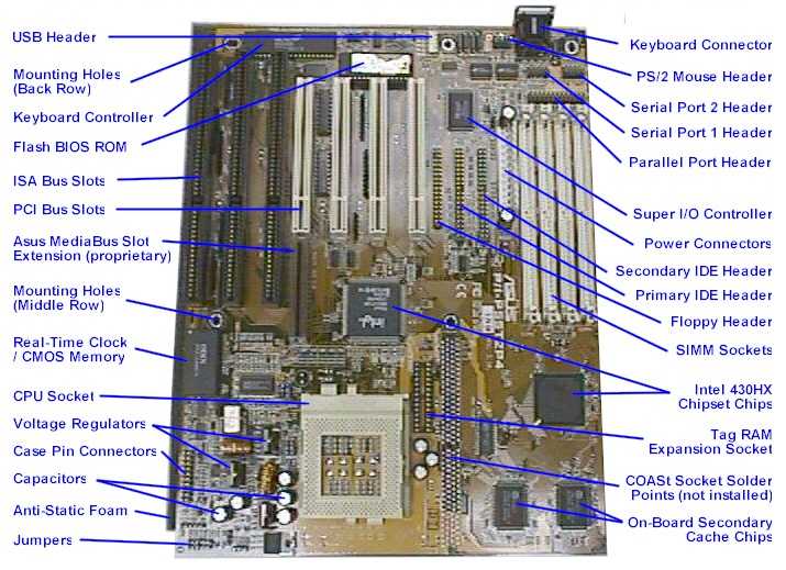 [ The PC Guide | Systems and Components Reference Guide | Motherboard and System Devices | The Motherboard ] Motherboard Integrated Components This section identifies the various components that you will find on your motherboard, and provides a brief description of each. There are pointers to the locations within this page where full details on each component can be found. Obviously, motherboards vary, and you may find more or fewer chips or devices on your board, depending on its age and level of integration. These are the most common items found on a typical modern motherboard. See this procedure for instructions on motherboard configuration; this one for directions on motherboard installation; and this one for instructions on connecting the motherboard to the system case.