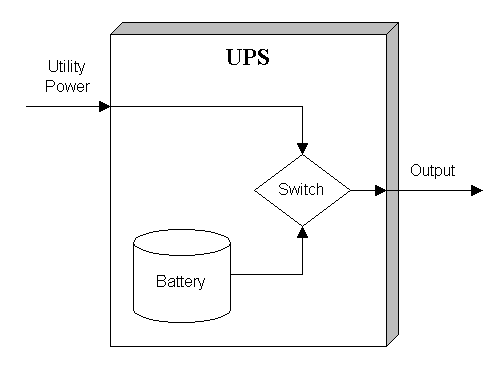 [ The PC Guide | Systems and Components Reference Guide | Power | External Power | Uninterruptible Power Supplies ] Uninterruptible Power Supply Overview Before delving into the details of how an uninterruptible power supply works, let's take a quick look at the basics of this type of equipment. The fundamental purpose of a UPS is to provide an uninterruptible source of power for the equipment it protects. How exactly is this done? An electric device plugged into the wall (or into a surge suppressor plugged into the wall) has only one source of power. If there is a blackout, the electricity is cut and the device obviously goes off immediately. A UPS changes this equation by providing its equipment two sources of power. UPSes are designed so that there is one source of power that is normally used, called the primary power source, and another source that kicks in if the primary is disrupted, called the secondary power source. The power from the wall is always one of these sources, and the battery contained within the UPS is the other. A switch is used to control which of these sources powers the equipment at any given time. The switch changes from the primary source to the secondary when it detects that the primary power has gone out. It switches back from the secondary power source to the primary when it detects that the primary power source has returned.