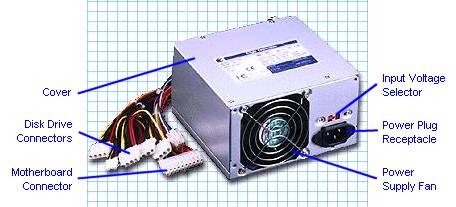 [ The PC Guide | Systems and Components Reference Guide | Power | The Power Supply ] Parts of the Power Supply This section of our guide to the power supply takes a look at the various parts that comprise the power supply both inside and outside the box. The exact contents of any supply vary depending on both the supply's form factor and its individual design, but most of them have the same general components.