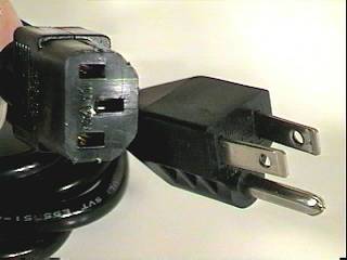 [ The PC Guide | Systems and Components Reference Guide | Power | The Power Supply | Parts of the Power Supply ] Power Cord and Power Pass-Through Virtually all PCs come with a standard black power cord that runs from a receptacle on the power supply to a power outlet in the wall (or preferably, a power protection device or UPS.) This cord is virtually unchanged since the dawn of the personal computer. It has a special keyed shape on the end that plugs into the power supply. All PC power cords are three-pronged.
