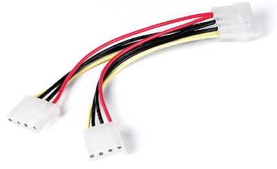 The number of connectors that come with each power supply varies considerably. In general, the bigger the supply, the more devices the manufacturer expects you to run, so the more connectors are included. Totals can range from 3 or 4 connectors to as many as a dozen. Another factor is just general quality; some makers skimp on the connectors to save money, and make you buy adapters to let you run additional drives. These adapters, usually called "Y-splitters" or "Y cables" after their general shape (sort of :^) ) contain one male and two female large-style hard disk connectors, cost around $2-5 in the U.S,. and are available in most electronics or computer stores. They are increasingly needed in modern systems, because not only do newer systems have more drives, they also have more fans and cooling devices, which also often attach using a disk drive power connector. Do remember, however, that adding a Y-splitter doesn't magically increase your power supply's output capacity! It just gives you more connectors.